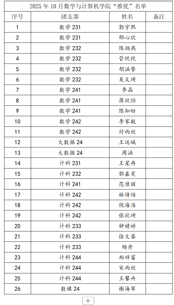 按照《中共丽水学院委员会办公室关于印发推荐优秀团员作党的发展对象工作实施细则(试行)的通知》要求,本着“公平、公正、公开”的原则, 经团支部推荐,数学与计算机学院团委审核,拟推荐郭宇熙等26位优秀共青团员为推优对象,现予以公示3个工作日(10月13日—10月15日)。如对上述同学有异议,请在10月15日之前来人、来电、来信或发邮件等方式向团委反映。联系人:张老师,联系电话:0578-2680977。具体名单详见附件。
