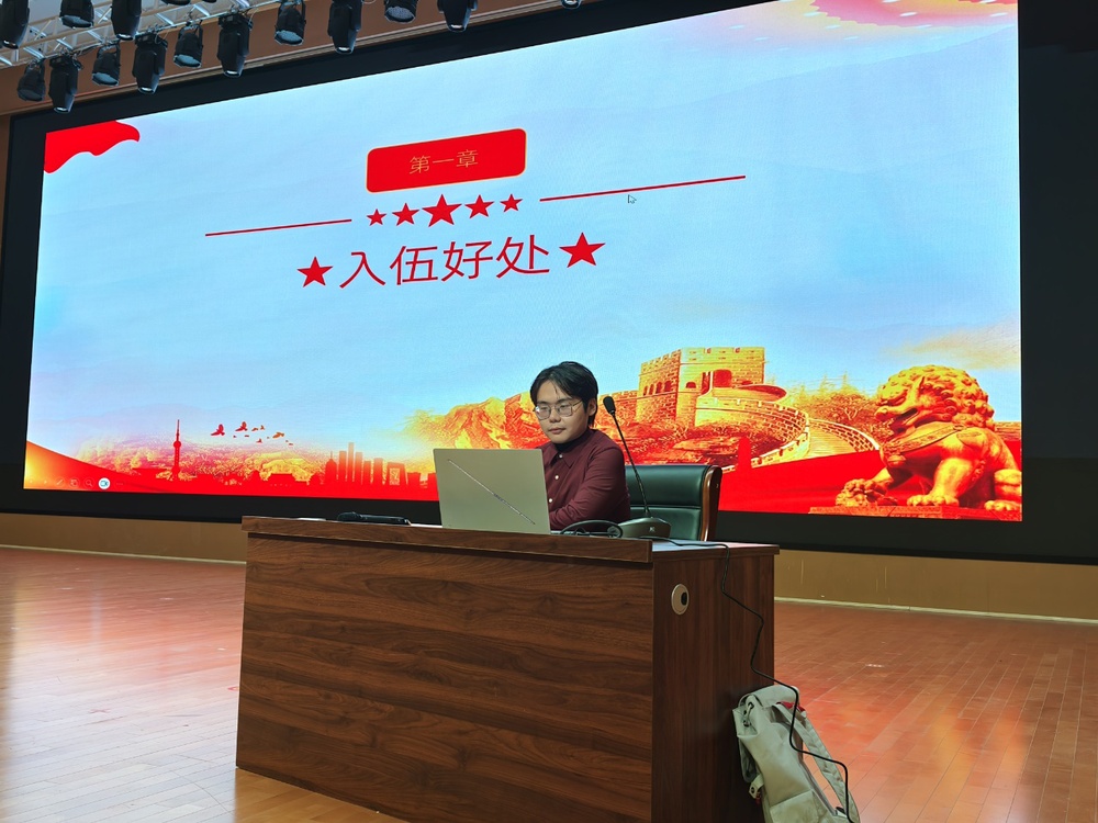 讲座中,韩承家老师以青春与国防同行为主题,阐述了新时代大学生肩负的国防安全责任。他通过生动案例,展现了近年来大学生士兵在部队成长成才的典型事迹,强调参军入伍既是履行公民义务的崇高选择,也是淬炼意志、成就梦想的重要途径。