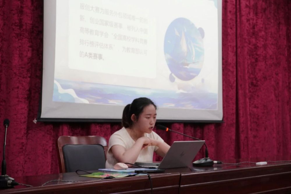 据悉,中国大学生服务外包创新创业大赛是经教育部认证的该领域唯一国家级A类赛事,注重企业真实场景模拟与团队协作实践,有助于提升参赛学生的商业洞察力和综合实践能力。周奕恺围绕赛事特点、往届优秀案例及备赛要领展开讲解,帮助在座同学尤其是大一新生进一步认识该项赛事的意义与参与方式。