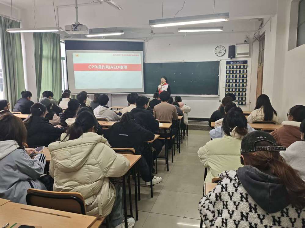 培训围绕“CPR操作与AED使用”两大核心内容展开。主讲老师通过理论讲解与实操演示相结合的方式,系统介绍了心肺复苏的操作流程、注意事项以及自动体外除颤器的使用步骤。同学们认真听讲,积极提问,表现出对急救知识的高度关注与学习热情。