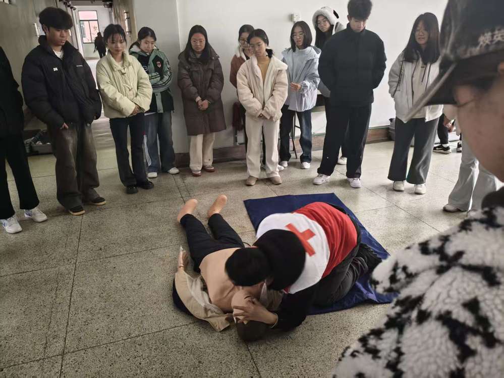 在实操环节,同学们在老师的指导下分组进行模拟练习,从判断意识、呼救求助,到胸外按压、人工呼吸,再到AED设备的正确使用,每一步都严格按照规范操作。通过反复练习与即时指导,同学们逐步掌握了基本急救技能,增强了在紧急情况下的自救互救能力。