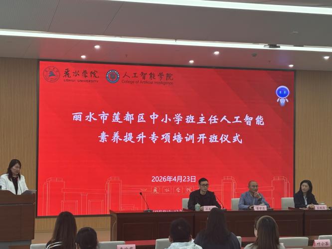 为深化教育数字化转型,提升区域中小学班主任人工智能综合素养,推动智能技术与班级管理深度融合,2026年4月23日,丽水市莲都区中小学班主任人工智能素养提升培训班开班仪式暨专题讲座在崇学楼1118顺利举行。