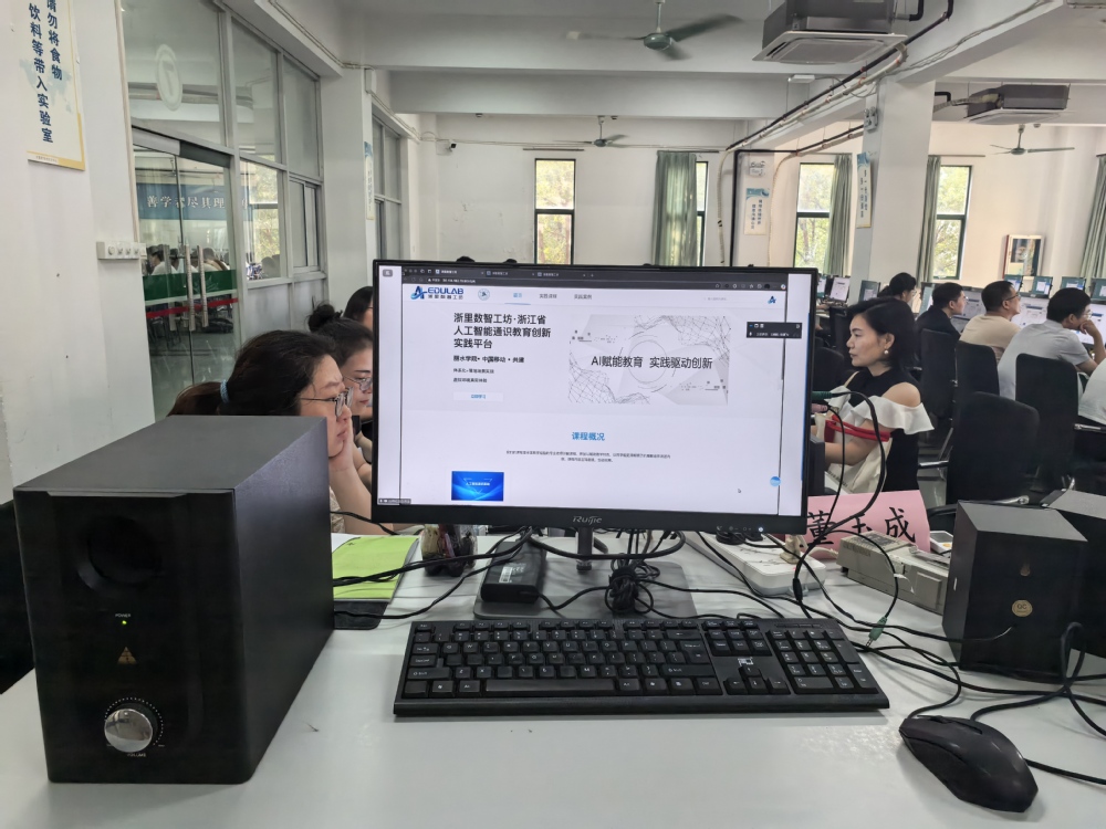 为积极响应国家人工智能发展战略,推动人工智能技术与教育教学的深度融合,提升我校教师的人工智能素养与教学应用能力,由我校教务处牵头,数学与计算机学院计算机系承办的“人工智能通识课程实践平台——浙里数智工坊”专题教学活动于2025年9月29日成功举行。本次活动特邀达内时代科技集团的技术专家团队进行全程讲解与指导,全校各院教师踊跃参与,现场学习交流气氛热烈。