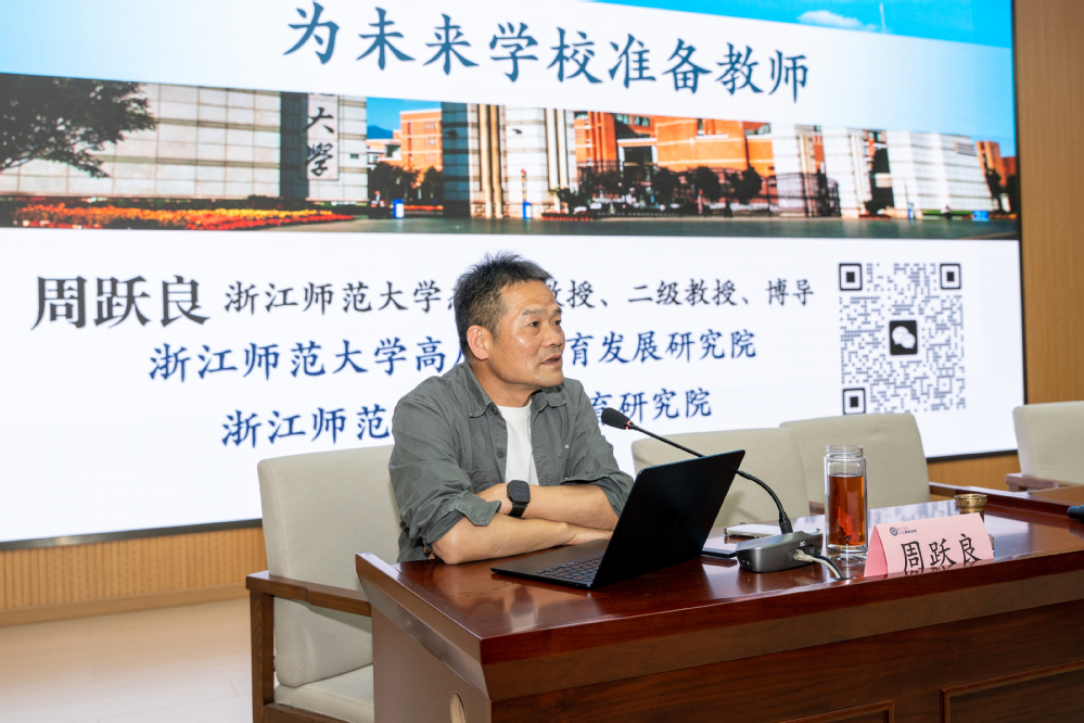 开班仪式结束后,浙江师范大学杰出教授周跃良作题为《中小学教师人工智能素养——为未来学校准备教师》的专题讲座。他立足未来学校发展图景,系统阐释了教师人工智能素养的核心要义、能力结构与实践路径,讲座内容兼具理论深度、实践针对性与现实指导性,为参训教师拓宽了视野、明晰了工作方向。